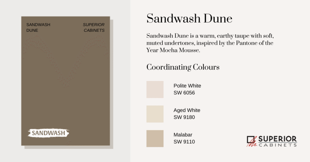 UPDATE (May 2025): Superior Cabinets has just launched a new color Sandwash Dune, which was inspired by the Pantone of the Year – PANTONE 17-1230 Mocha Mousse.